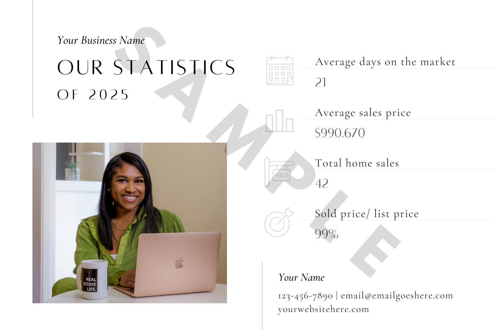 - 10 Small Email Templates (1600x1064 px): Ideal for weekly market updates, housing forecasts, and showcasing your yearly stats.