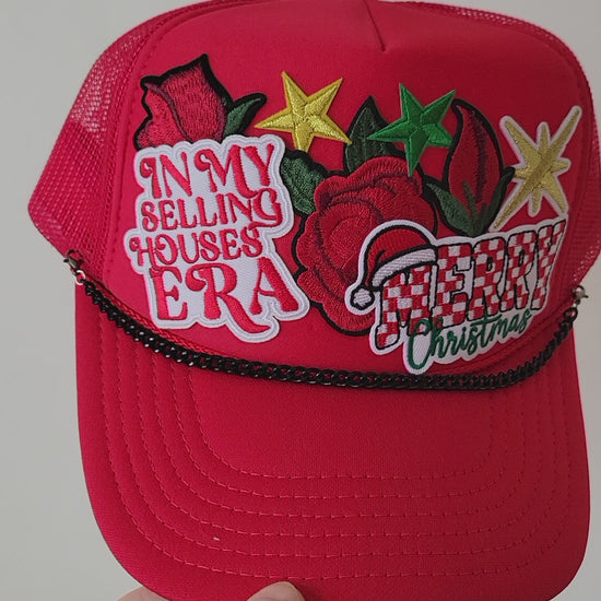 Limited Edition Foam Trucker Patch Hat – In My Selling Houses Era, Merry Christmas, Holiday Florals + Black Chain Trim