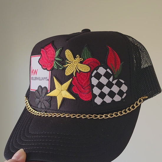 Limited Edition Foam Trucker Patch Hat – Keller Williams Patch, Roses, Gold Bee + Metal Chain Trim