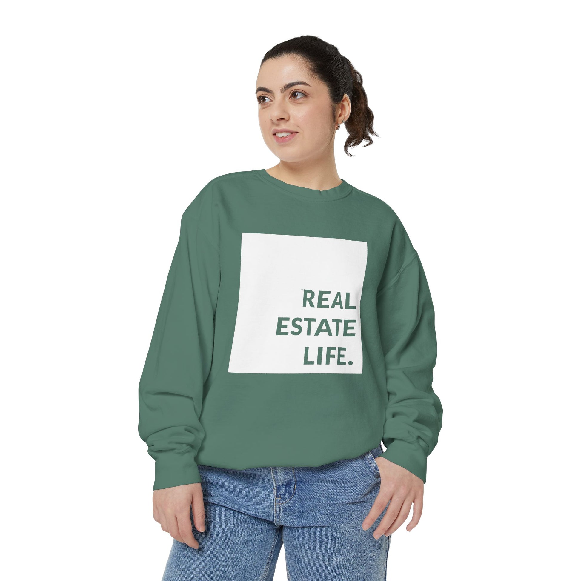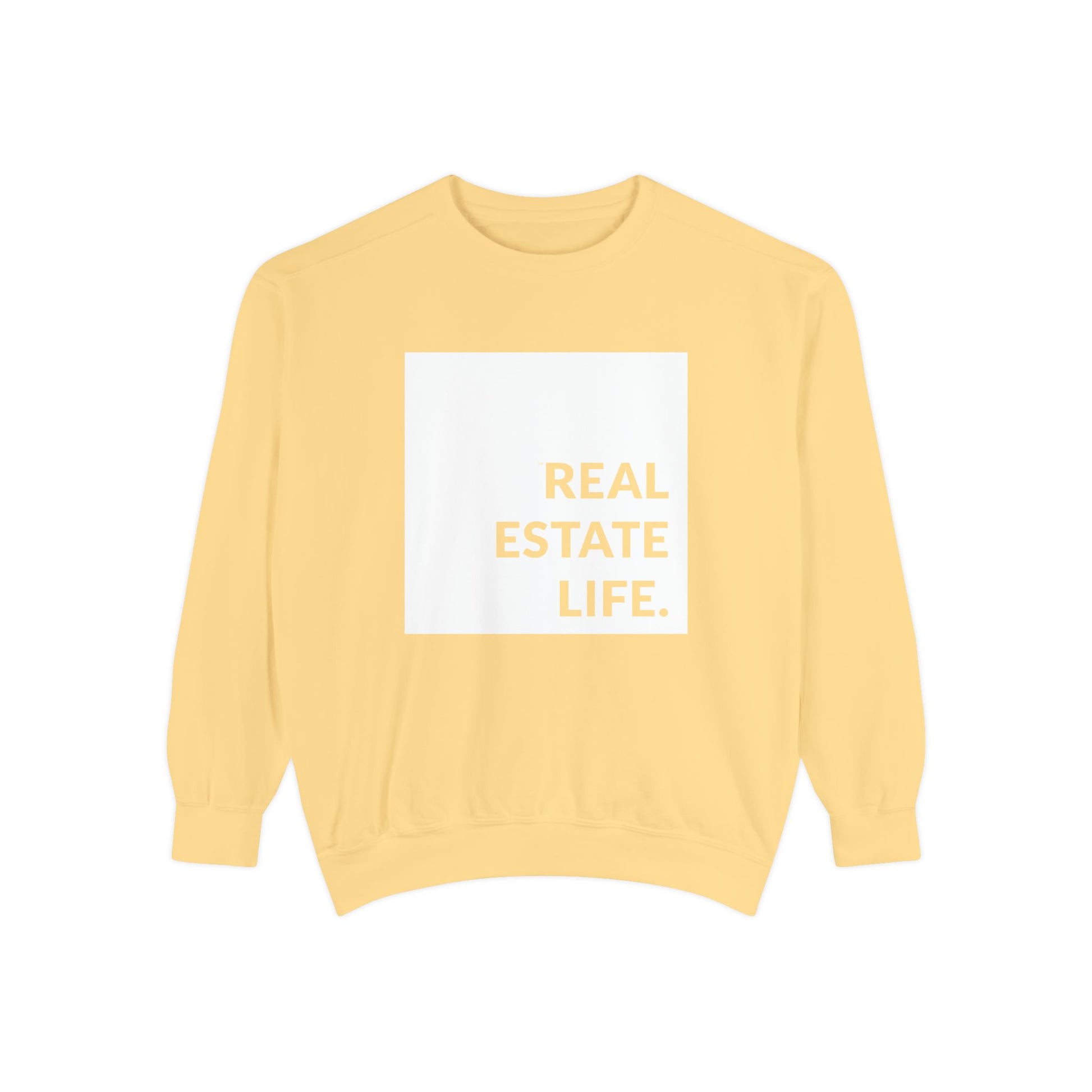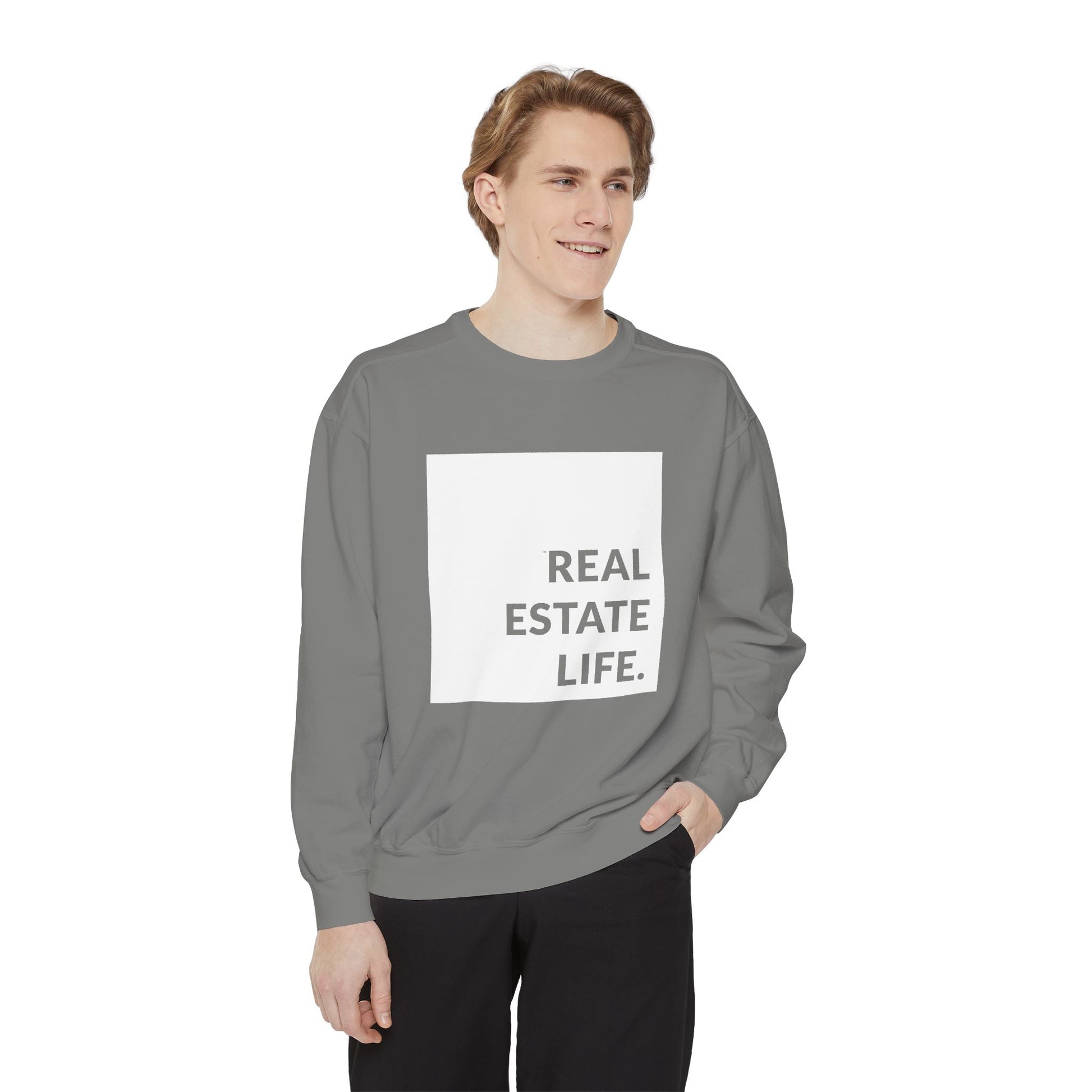 A clean, square chest print reading “REAL ESTATE LIFE.” sits low-key on the front. a subtle nod to open houses at dawn, closing-day triumphs, and the steady grind behind every listing. Lightweight enough for layered looks, it settles into routines: client meetings, morning coffees, or late-night paperwork sessions that turn into stories.